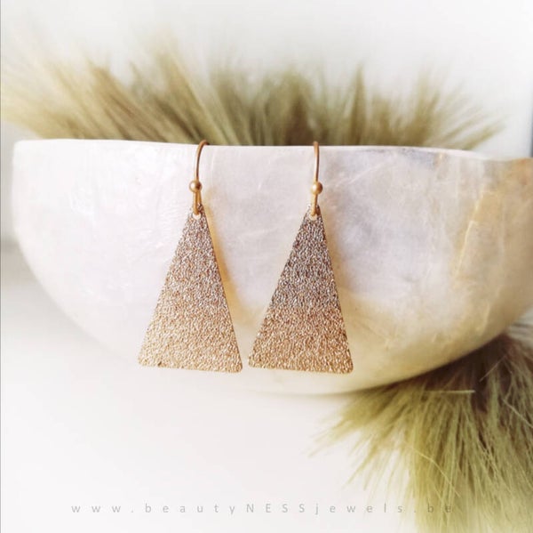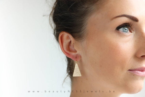 Eenvoud siert! Deze oorbellen zijn speels en stijlvol met zijn langwerpige droehoeksvorm en zilver of goud- mat/glanzende afwerking. Mooi te combineren bij classy en casual chic outfits.